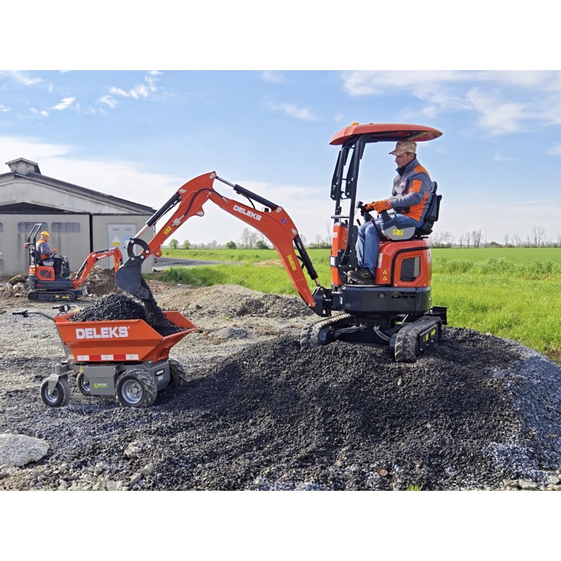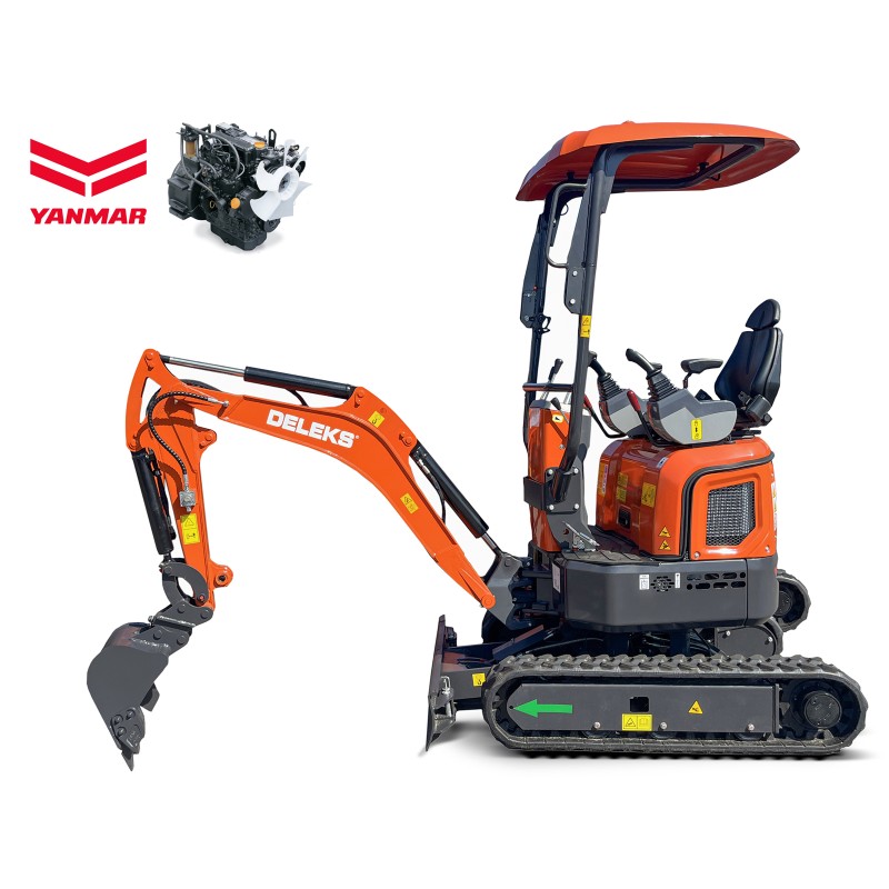 Miniescavadeira Deleks ® De 1,2 Tonelada Com Motor Yanmar 3tnv70-ssy, Giro Traseiro Zero, Refrigeração A Água, Alavancas De Controle Laterais, Trem De Pouso Extensível, Lança Giratória, Velocidade Dupla.