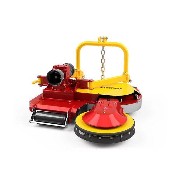 O cortador rotativo IMG com o seu deslocamento lateral extremo em combinação com o disco do braço oscilante permite que o trator passe pelo centro do pomar.