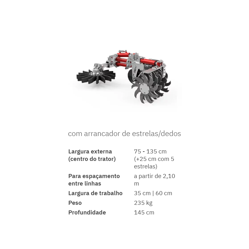 Isto garante um controlo mecânico suave e rápido das ervas daninhas, sem a necessidade de reajustar constantemente as alfaias.