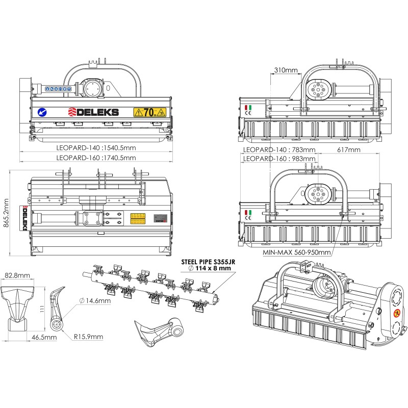 Triturador Com Martelos 140cm / 315kg Para Tratores - Deleks ® Leopard-140-sph - Deslocamento Hidráulico 310,0 Mm - Eixo De Tomada De Força Incluído