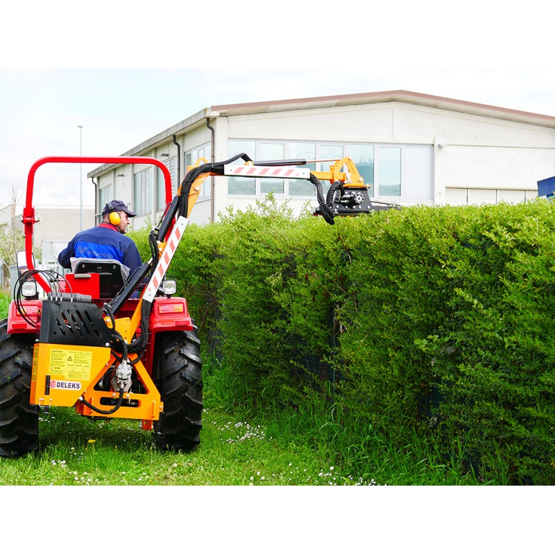 Cortador De Cerca Viva Para Trator, Cortador De Cerca Viva Múltipla E Cortador De Acostamento De Grama Com Braço Traseiro - Deleks ® - Sistema Hidráulico Próprio, Funciona Completamente Na Tomada De Força - Eixo Da Tomada De Força Ce Incluso.